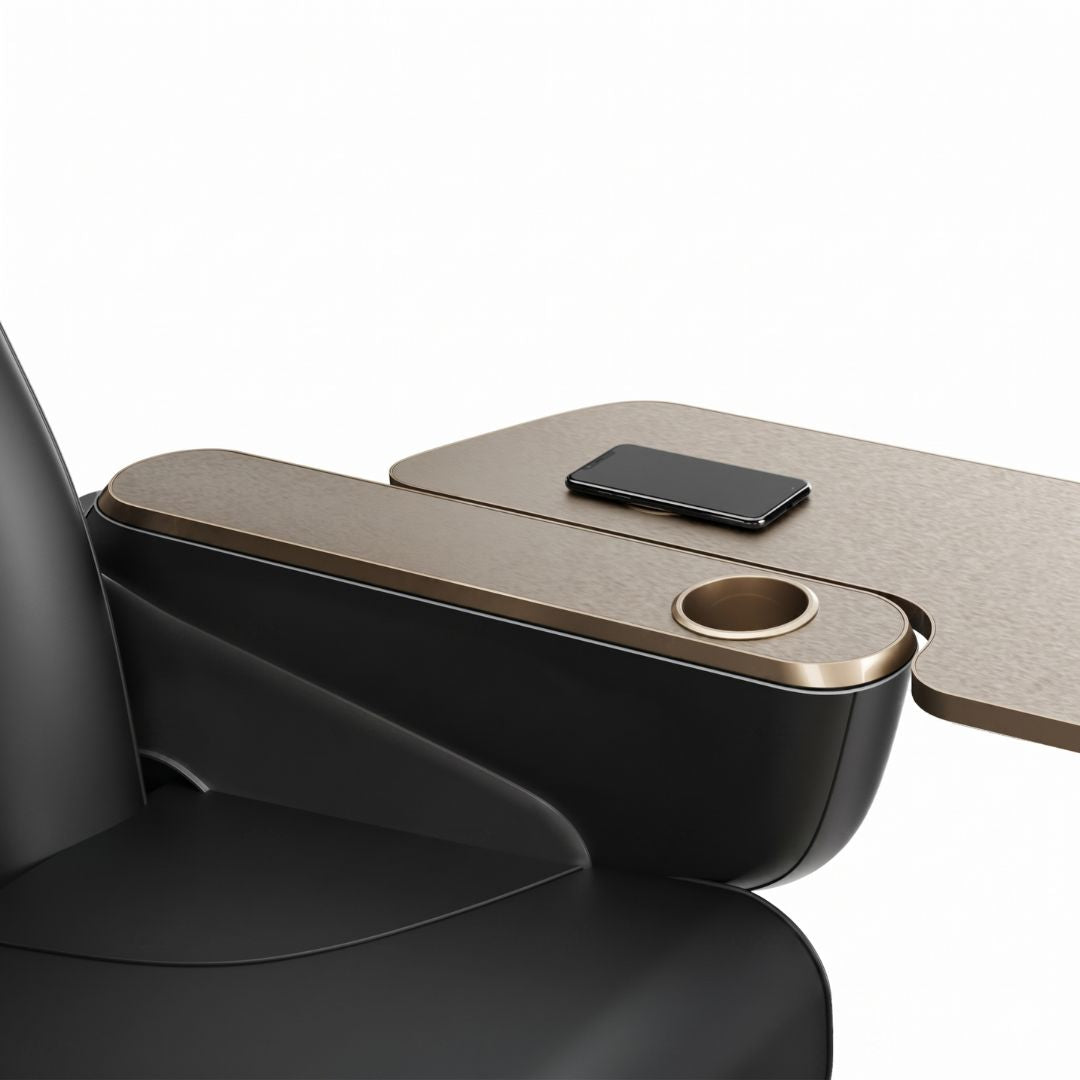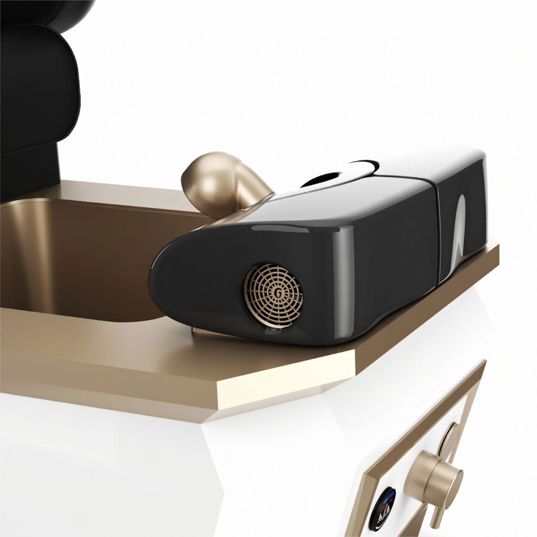Elevate your interior design with the Avela Premium Spa, the ultimate answer to modern salon aesthetics. This setup demands attention with a stunning diamond-quilted canopy and integrated LED lighting that illuminates your work from every angle. It’s more than just a pedicure station; it’s a functional work of art featuring high-quality matte gold fixtures, an adjustable footrest with optional air venting, and a removable canopy for versatile styling. Give your clients the privacy they crave and the "Instagrammable" environment they’ll love, all anchored by the elite 9690 massage chair.